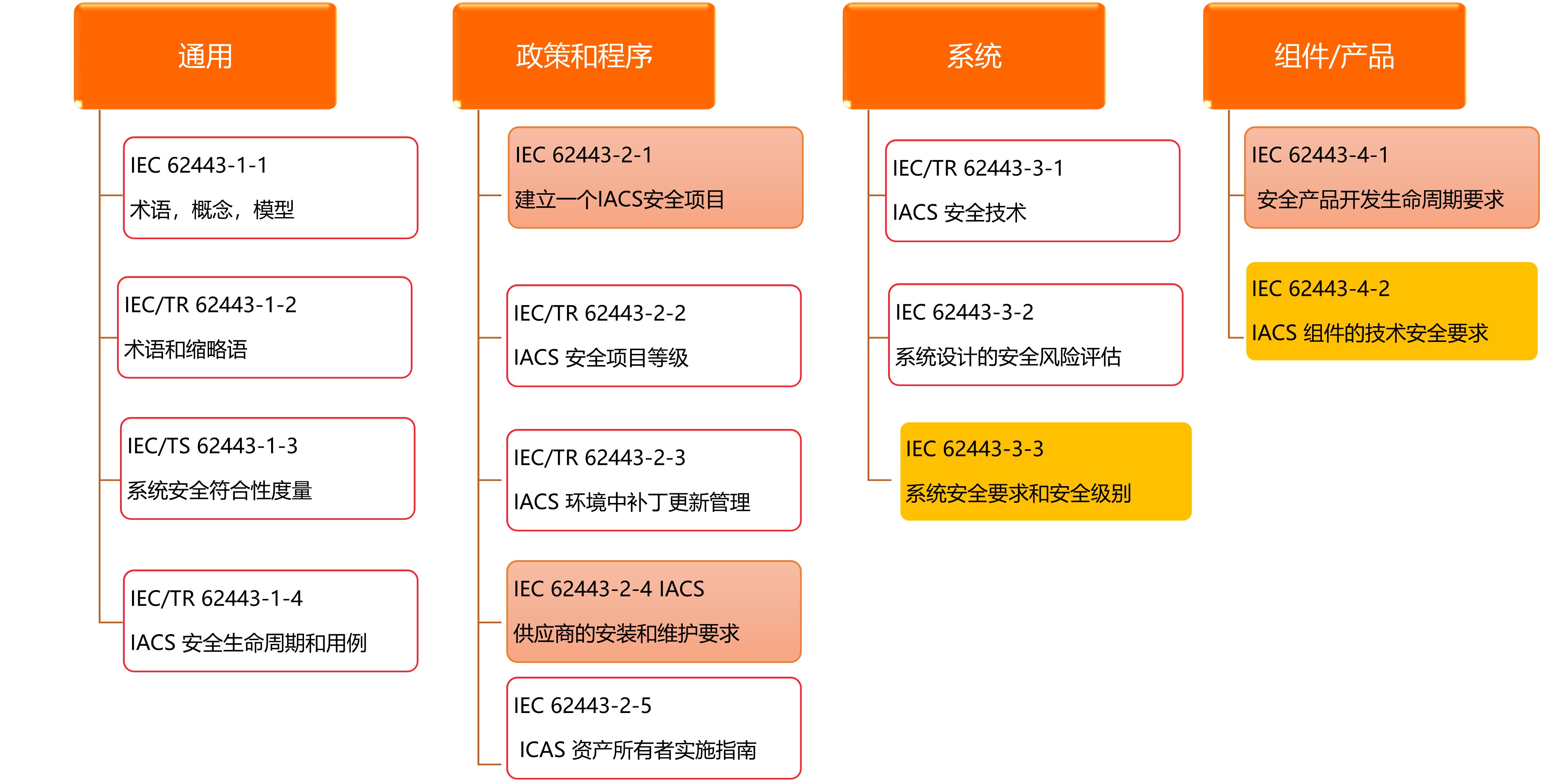 IEC 62443工业自动化和控制系统安全作为一个国际标准,全面涵盖了自动化领域的信息安全问题,正逐步被越来越多的国际制造商、系统集成商、运维商、业主、设计单位所采用,以确保其产品、系统在整个生命周期中的网络安全。为工厂运营商和设备制造商有效实施安全防护提供了方向性指导,IEC 62443 系列标准一共分为四个部分,共计十四个文档。
