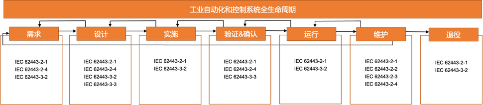 ● IEC 62443-4-1 安全产品的开发生命周期要求, 该国际标准描述了与工业自动化和控制系统环境中适用的产品、网络安全有关的产品的开发生命周期要求。该标准中涉及的产品生命周期包括安全管理、安全需求、安全设计、安全实施、验证和确认、缺陷管理、安全升级/补丁管理和安全指南等注意事项。